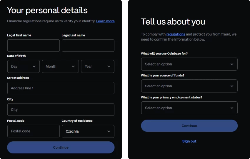 Obchodování přes Coinbase je poměrně snadné. Stačí si vytvořit účet, vložit na účet peníze (kartou nebo SEPA platbou) a provést nákup kryptoměn (poplatek přibližně 2 až 5 %). Zakoupené kryptoměny pak můžete nechat na obchodním účtu nebo převést na vlastní kryptoměnovou peněženku.
