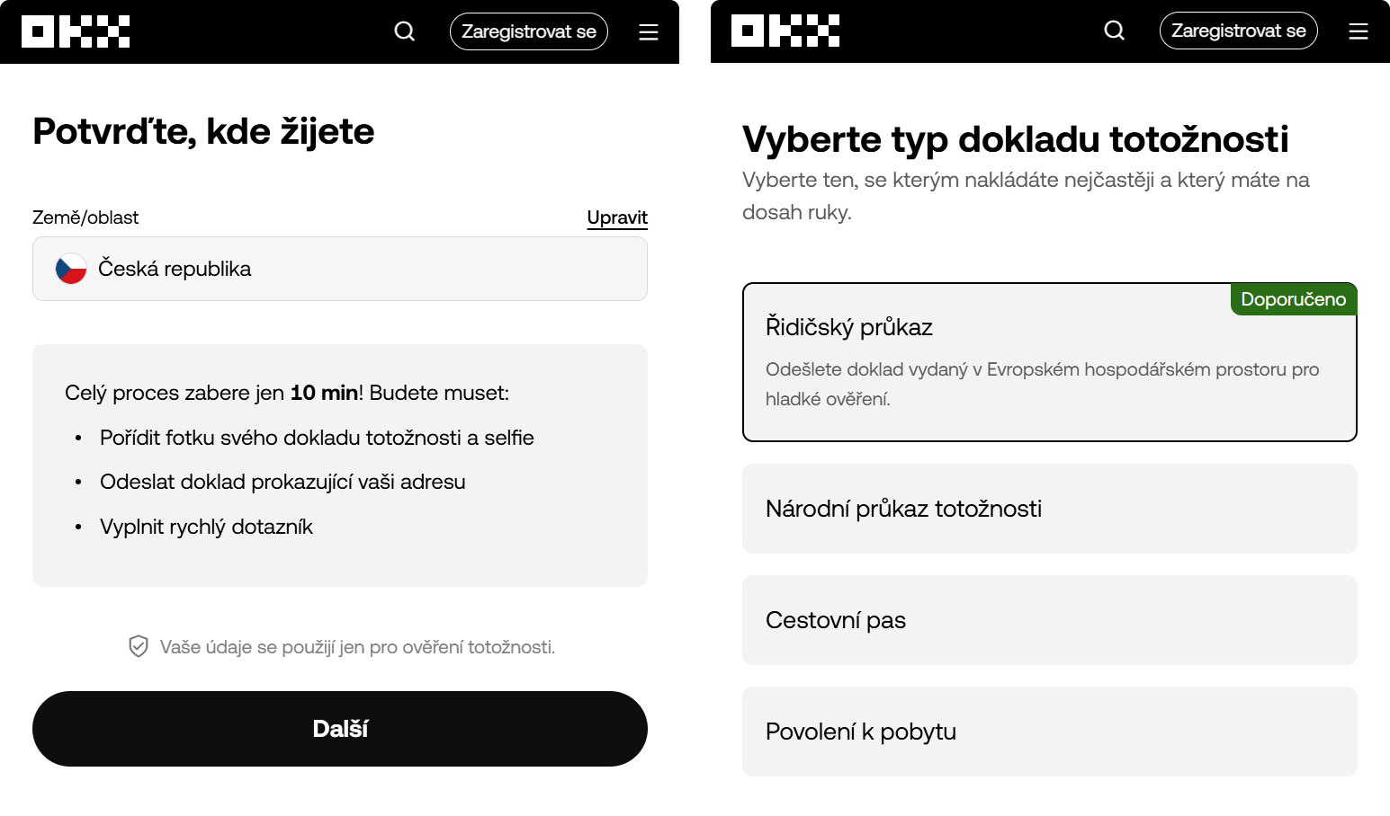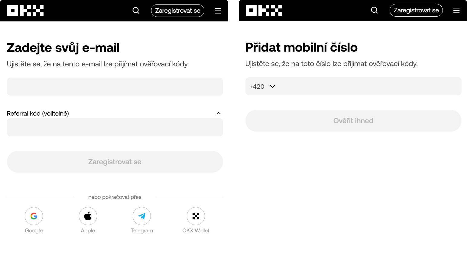 Abyste mohli využívat služby OKX, musíte si nejprve vytvořit obchodní účet a ověřit svoji totožnost. Není to ovšem nic složitého a celý proces nezabere ani 15 minut (viz návod níže).