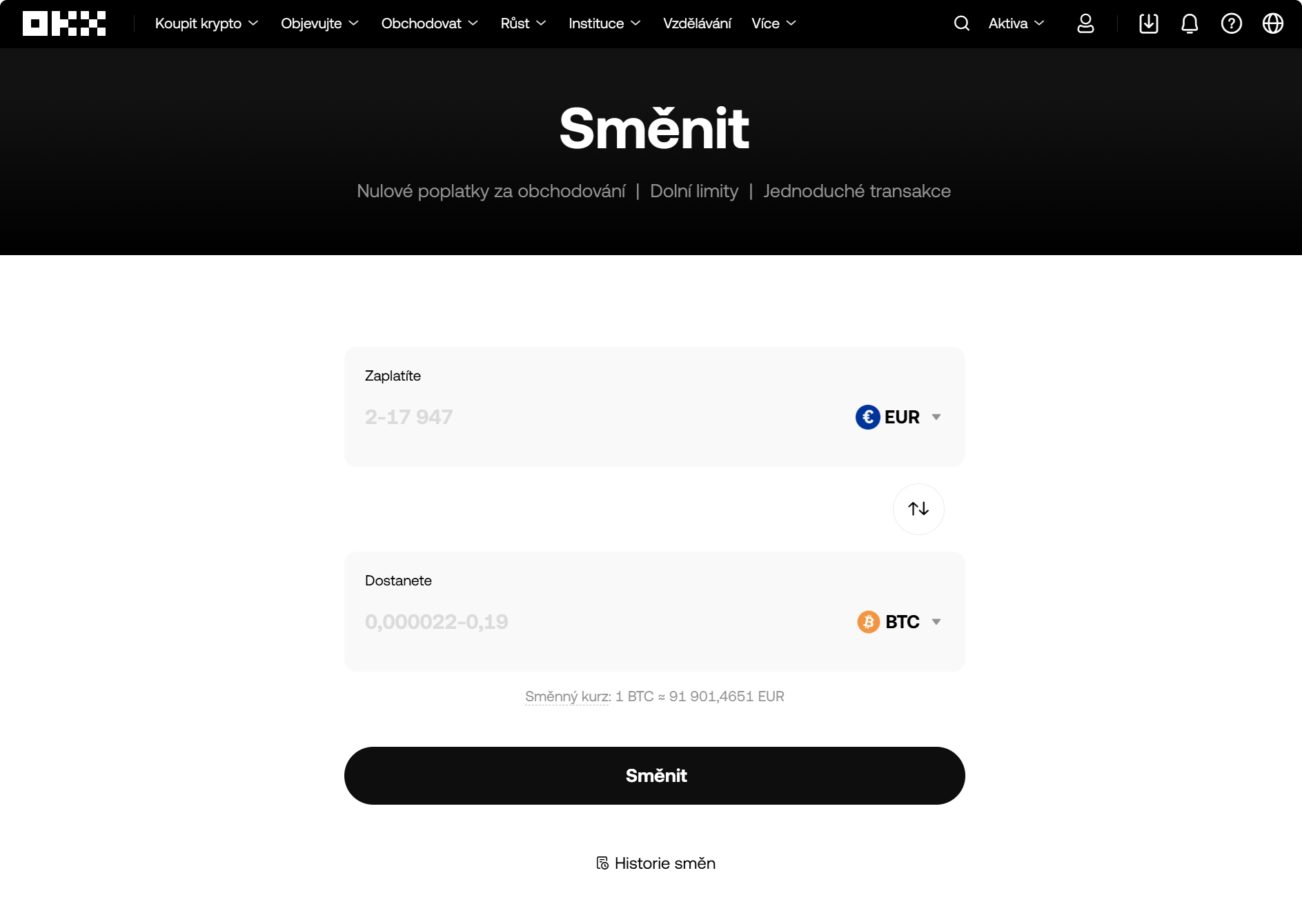- Méně transparentní poplatky – Část poplatku může být „skrytá“ ve směnném kurzu, ale OKX vás na to neupozorní. Někteří uživatelé si toho nevšimli a potom byli nepříjemně překvapeni.