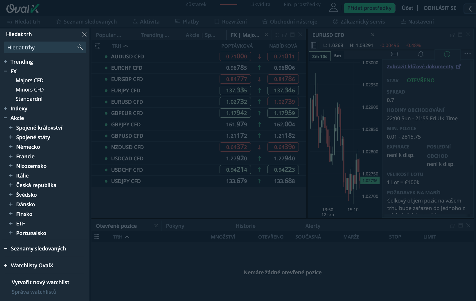 Mezi hlavní výhody OvalX patří vedení obchodního účtu v korunách, nízké spready a podpora češtiny. Český překlad ovšem není kompletní, takže bez znalosti angličtiny se obchodníci neobjedou.